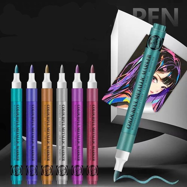 Intensyvios metalizuotos spalvos markeriai „AW.1995“ puikiai tinka įvairiems efektams, mišrioms technikoms ir kaligrafijai. Vandens pagrindu pagamintas blizgus rašalas išlieka matomas net ant tamsaus ir spalvoto popieriaus. Apvalus flomasterio galiukas tinka tiek rašymui, tiek ir piešimui.